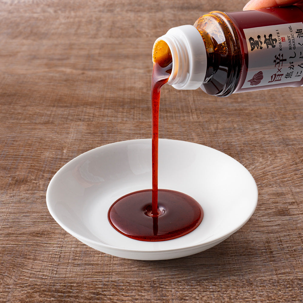 焦がしにんにく独特の香ばしさと、唐辛子のピリッとした辛味で、さまざまなお料理にお使いいただけます。